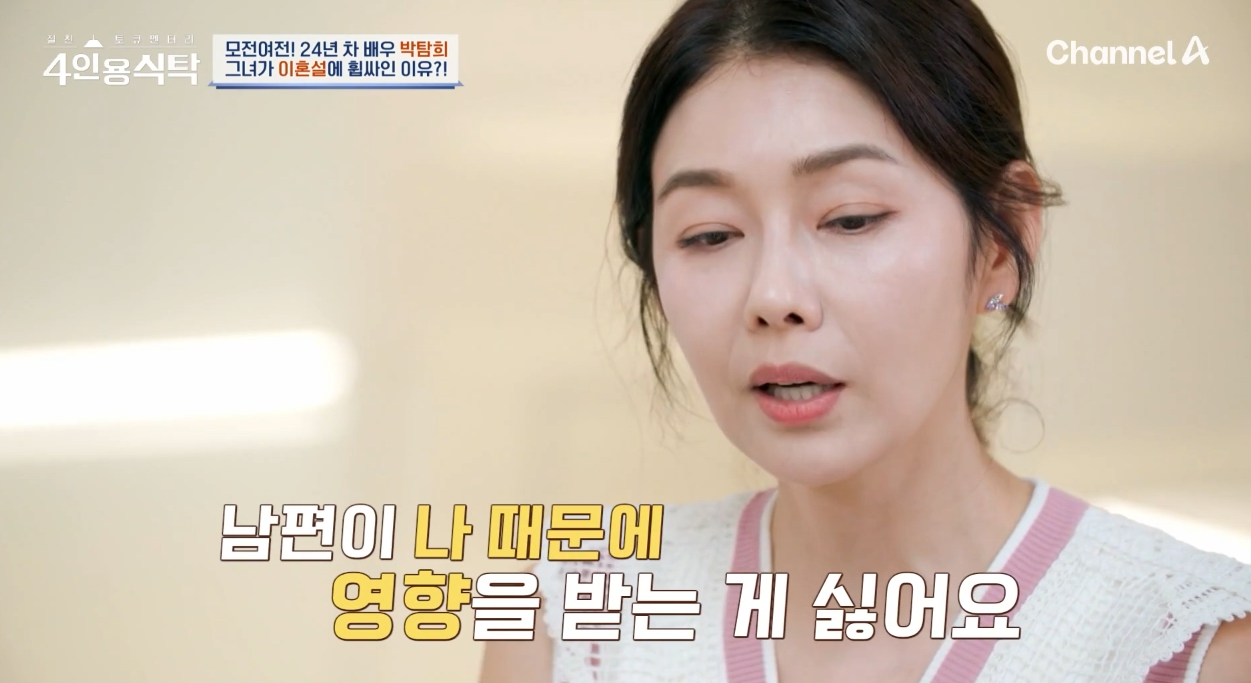 또한 박탐희는 최근 불거졌던 이혼설에 대해서도 언급했는데요, 그녀는 "남편이 연예인이며, 나로 인해 영향을 받는 것이 싫다"고 밝히며 솔직한 심정을 전했습니다.