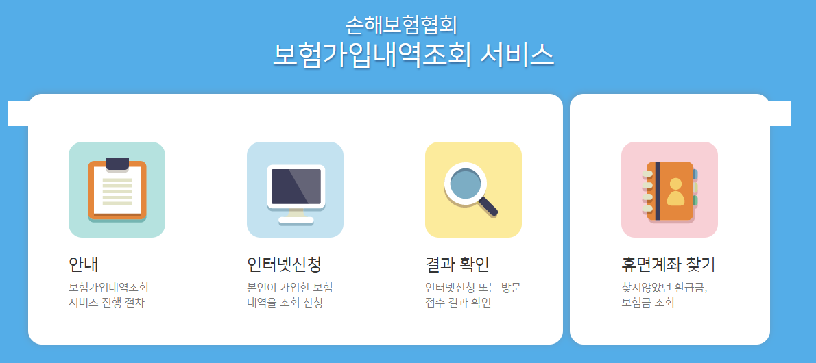 손해보험협회에서는 보험가입내역조회 서비스를 통해 내 명의로 개설된 휴면계좌와 휴면보험금을 확인할 수 있는 기능을 제공합니다.