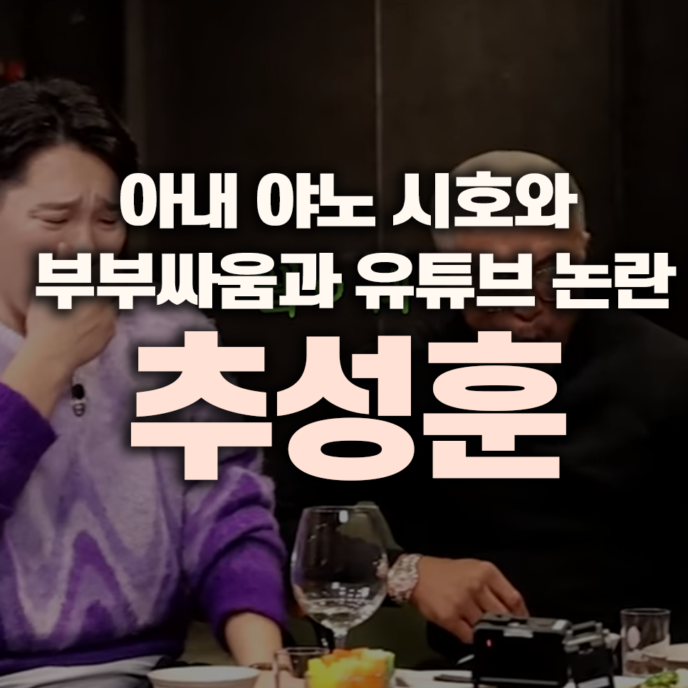 추성훈은 자신의 유튜브 채널을 통해 아내 야노 시호와의 갈등을 솔직하게 밝혔습니다.